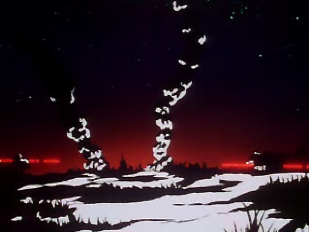 I didn't catch all of the setup, because I was not expecting to see anything of this detail from a PlayStation game. I was too busy screenshotting pretty drawings. Anyway, after the Captain tells everyone to abandon ship, he sits back for the fireworks that come from the self-destruct sequence, and we find out that - obviously - a naked woman has made it down to the surface of a planet in some wreckage.