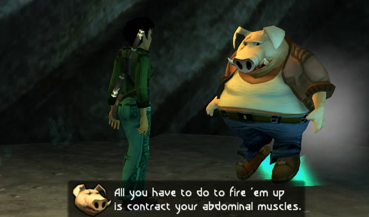 While dialogue choices aren't voiced, much of the game is, with Jade sounding confident and Pey'j like an old man. He's what you might call a 'character'. Everyone knows a character, and this is Jade's. That was a sentence that literally told you nothing about this pig mechanic/engineer, I apologise.