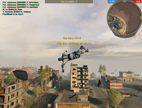 The third and final match on familiar territory took me to the skies. Literally. My sniper perch was targetted by artillery, and I pulled out the ragdoll physics once more. This is Battlefield.