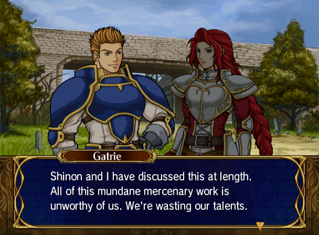 Quirks aside, I was continuing to play Path of Radiance and thoroughly enjoying the gameplay. I was making use of none of the systems, really - something that will eventually come back to bite me in the arse - but was eager to see more of Fire Emblem.