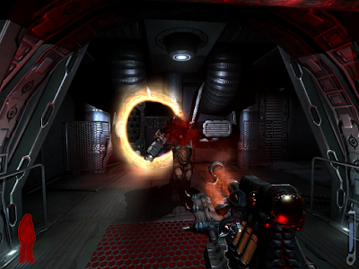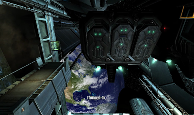 It is in this Half-Life train-like ride through the ship that we really see the id Tech 4 engine at work. The last time I saw lighting like this was Doom 3. It was great then and it's just as good here. A little less so, if I were to directly compare the two, but on account of Doom 3 being the more horrific game.