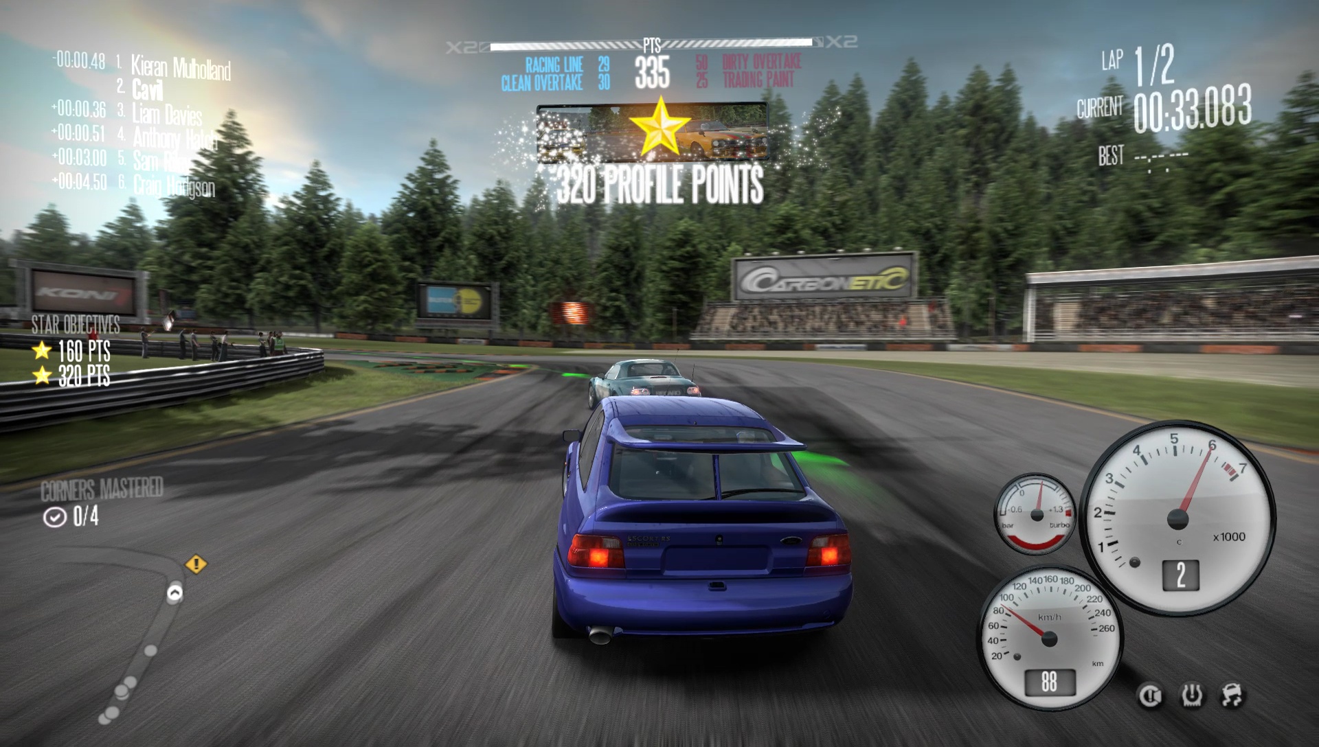 During a race, you'll be awarded points for sticking to the racing line, cleanly overtaking someone, mastering a corner and so on. Pick up enough points and you'll be awarded a bonus star towards unlocking the next set of events.